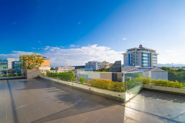 - Tầng thượng: Một tầng thượng tuyệt đẹp với tầm nhìn độc đáo, giúp bạn thư giãn và ngắm nhìn máy bay siêu xịn. Tại đây có một bể bơi lớn 40m2 và giường rộng 1m8.